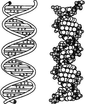 Рис. 1. Двуспиральная конфигурация молекулы ДНК, содержащей генетический код жизни