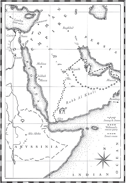 ‘Another year, at least. And that is with both ships splitting the work. It’s hostile territory and the coastline is complex. We’ve sent a small exploratory party inland to the west of the Arabian Peninsula from the ship Palinurus. Information gathering, that kind of thing. It’s a start.’ Malcolm is glad that Pottinger is getting to grips with the issues. ‘The party comprises a lieutenant and a ship’s doctor, Lieutenant Jones and Doctor Jessop. They’ve gone in south of Mecca with a party of local guides and will travel as far as the camp of a Bedouin emir that we have paid for the privilege. The whole area is desert. The rendezvous is at Aden in four weeks.’