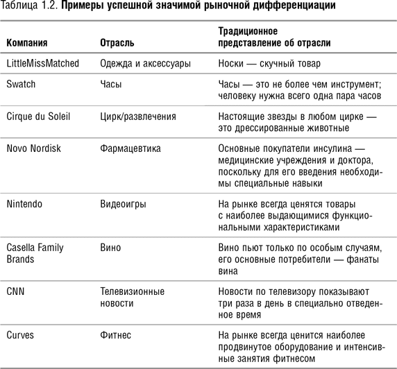 Бренд LittleMissMatched далеко не единственный, у которого получилось опрокинуть традиционные представления о товарах массового спроса. В каждом из примеров, приведенных в табл. 1.2, компаниям-инноваторам удалось увидеть возможности для создания потребительской ценности, изменив представления и условности, принятые в соответствующих категориях и отраслях.