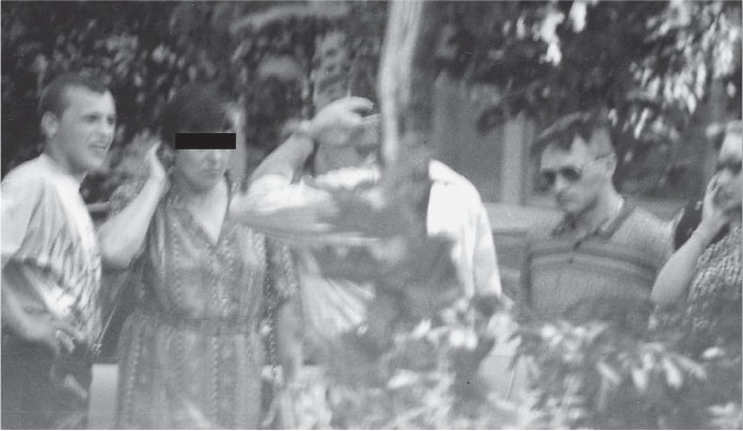 Этот снимок, зафиксировавший бытовую сцену – проводы на курорт жен и родственников в Сочи близкими «Аксёна» (Сергей Аксенов): «Курноса», «Костаса», «Крота», о котором автор узнал из телефонных переговоров за неделю, явился прямым доказательством, для «главшпанов» не выполненного их приказа «валить всех». Один снимок – один выстрел, по времени это одно и то же… Кстати, у этих ребят был выработан свой шифр, больше никогда не встречавшийся за все время прослушивания телефонных переговоров. «Курнос» звучал, как «Кукурнокус»; «Тимоха», на снимке его нет – «Кутимокус»; «Крот» – «Кукротус». Это может показаться простым, но когда вся речь состоит из такой белиберды, ценность информации теряется, поскольку сразу понятным остается маленький ее массив.