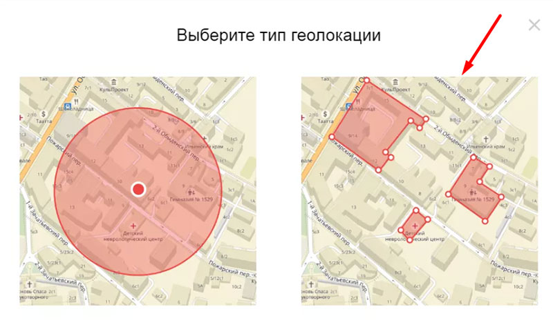 Полигоны – элемент геотаргетинга. Представляет собой сложную фигуру, отличную от окружности. Например, квадрат или пятиугольник. Обычно используется для настройки показа объявлений по конкретному району (который нельзя выбрать в настройках региона показа).
