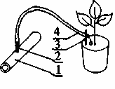 1 – резервуар; 2 – фильтр; 3 – насос; 4 – магнитный клапан; 5 – капельница; 6 – пластмассовый разводящий трубопровод; 7 – вода.