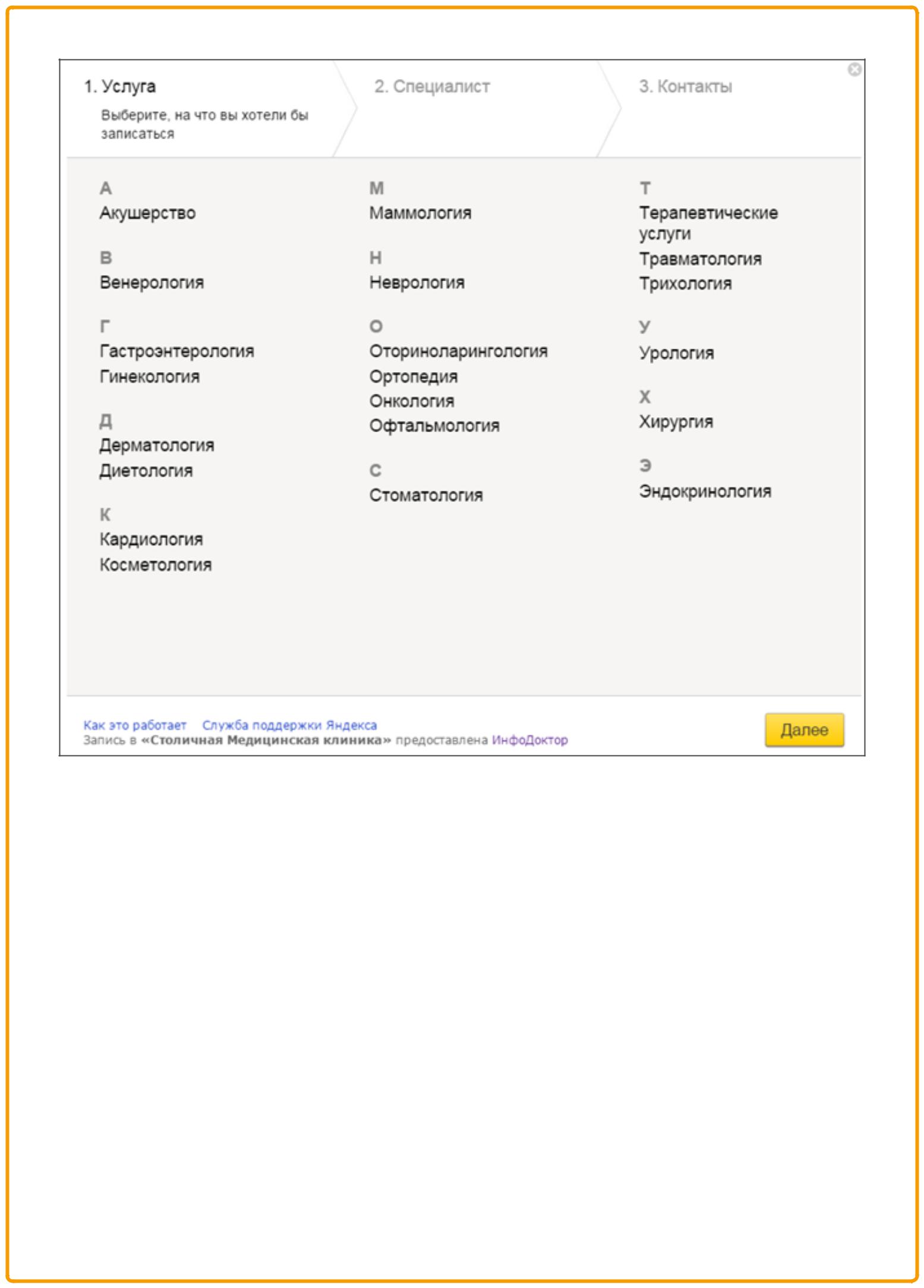 В свое время много говорилось на тему того, что «Яндекс» так и не запустил эту технологию в основной поиск «Яндекса». На самом деле эта технология работает, но только редко и только в определенных тематиках. «Яндекс» сделал все программные разработки, но не выработал стратегию вывода нового функционала, именно поэтому «Островов» еще нет в широком использовании. Также вероятно, что у «Яндекса» появилась проблема с учетом поведенческого фактора, так как если не давать пользователям возможности перехода на сайт из поисковой выдачи, то невозможно будет оценить, понравился сайт пользователю или нет. Функционал «Яндекс.Острова» вы можете найти, если набрать в строке «Яндекса» запрос «медицинская клиника». В поисковой выдаче «Яндекса» на первой позиции в результатах поиска вы увидите кнопку «Записаться».