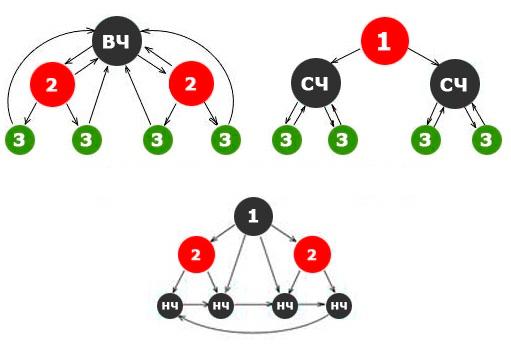 Рисунок 66. Схематическое изображение разных видов перелинковки