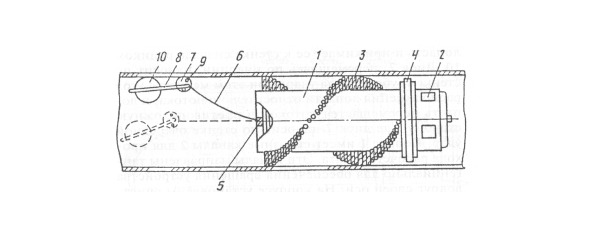 Для сокращения времени поиска застрявшего очистного устройства Кравцов с соавторами [19] предлагают другое устройство для очистки внутренней полости трубопровода (Рис. 30).