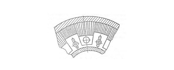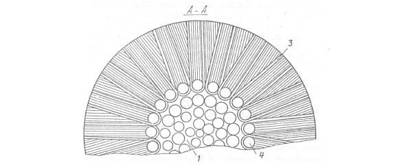 Рис. 24. Сечение по А – А на Рис. 23, где 1 – трос; 3 – щетинки; 4 – наружные пряди троса.