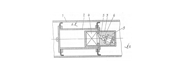 Для увеличения зоны обнаружения Кравцов и Гречко предлагают [20] закрепить в задней части очистного устройства генератор переменного магнитного поля 3 для излучения знакопеременных магнитных импульсов (Рис. 32). Генератор 3 включает блок питания 4, электродвигатель постоянного тока 5, муфту 6 и постоянные магниты, вращающиеся в подшипниках в немагнитном корпусе 9. Ось вращения генератора смещена относительно оси очистного устройства на 300 – 600.