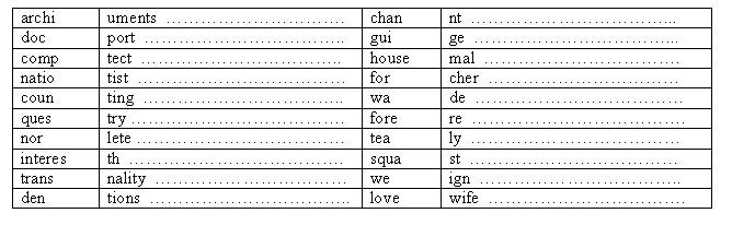 Tele…hone, cin…ma, comp…ter, ta…i, cam…ra, tele…ision, passp…rt, je…ns, rad…o, b…nk, cass…tte, di…c, vid…o, sand…ich, ba…, toil…t, hot…l, fo…tball, rest…urant.