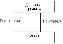 Магазин "…" позволит нам рассмотреть типичную ситуацию, в которой товар покупается у поставщиков за наличные денежные средства, а затем, несколько позже, продается потребителям также за наличные денежные средства. Эта операция представлена на рисунке.