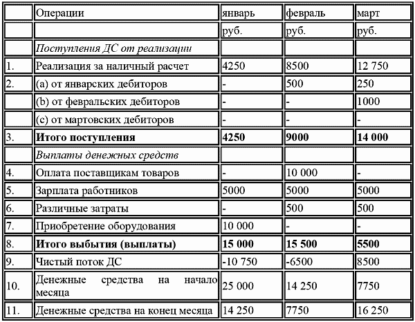 Татьяна предприняла попытку составить прогноз движения денежных средств на первые три месяца года. Такого рода документ позволяет увидеть, из каких источников и когда поступят денежные средства, а также когда и в каком количестве они будут израсходованы.