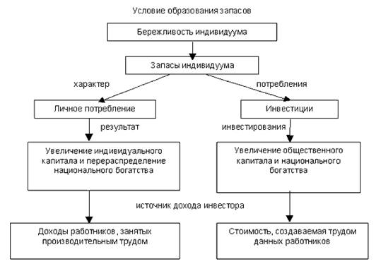 Следовательно, к инвестициям в общественном масштабе относятся затраты, направленные на возмещение и увеличение капитала, существующего в указанных формах, в результате чего преумножается национальное богатство и собственник капитала получает доход из создаваемой им стоимости. Другая форма инвестиций, как следует из рассуждений Смита, представляет собой затраты на приобретение имущества, которое приносит владельцу доход, не увеличивая при этом национальное богатство. Источником этого дохода является доход, создаваемый производительным трудом работников, занятых в перечисленных выше сферах деятельности. То есть в данном случае происходит не увеличение национального богатства, а его перераспределение. Следовательно, мы можем сделать вывод о том, что двойственная трактовка сущности инвестиционного процесса появилась еще в учении А. Смита и состоит она в неоднозначном понимании самого объекта инвестирования – капитала. С одной стороны, классик относит к нему имущество и деньги индивидуума, способные приносить ему доход; с другой – факторы производства, способные помимо этого увеличивать богатство общества.