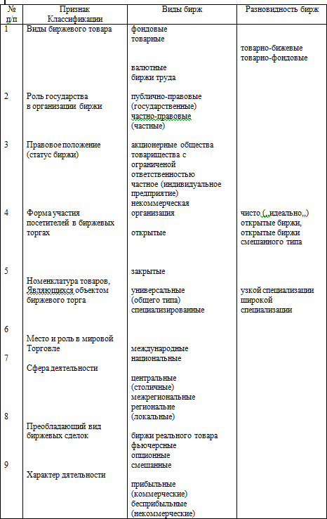 8. Пo xapaктepy onepaций миpoвaя npaктикa биpжeвoй тopгoвли выдeляeт cлeдyющиe виды биpж: