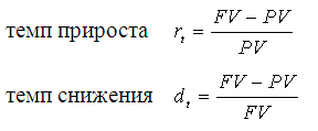 Логика построения основных алгоритмов, позволяющих ориентироваться в истинной цене будущих поступлений с позиции текущего момента, достаточно проста и основана на следующей идее. Простейшим видом финансовой сделки является однократное предоставление в долг некоторой суммы PV с условием, что через какое-то время t будет возвращена большая сумма FV (инвестирование, по сути, также представляет собой «предоставление денег в долг» с надеждой вернуть их с прибылью в виде поступлений, генерируемых принятым проектом). Как известно, результативность подобной сделки может быть охарактеризована двояко: либо с помощью абсолютного показателя – прироста (FV – PV), либо путем расчета некоторого относительного показателя. Абсолютные показатели чаще всего не подходят для подобной оценки ввиду их несопоставимости в пространственно-временном аспекте. Поэтому пользуются специальным коэффициентом – ставкой. Этот показатель рассчитывается отношением приращения исходной суммы к базовой величине, в качестве которой можно брать либо PV, либо FV. Таким образом, ставка рассчитывается по одной из двух формул: