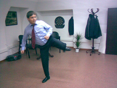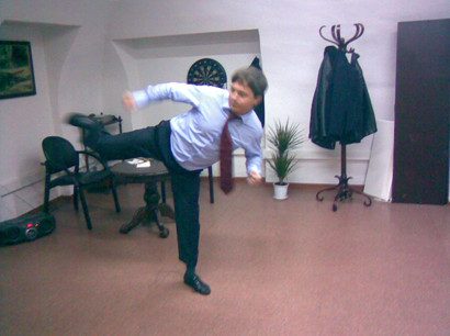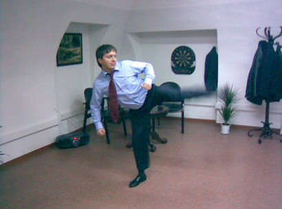 Чрезмерно не наклоняйтесь. Речь идет о всем известном физическом законе: если центр тяжести смещен от центра равновесия – падение неизбежно. С другой стороны, за счет более глубокого наклона и поворота бедер увеличивается дальность попадания удара. Для того, чтобы избежать потери равновесия, в этом случае, следует использовать ударную ногу в качестве противовеса. Однако новичкам не советуется этим злоупотреблять.