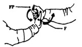 Удар по наружной стороне колена.