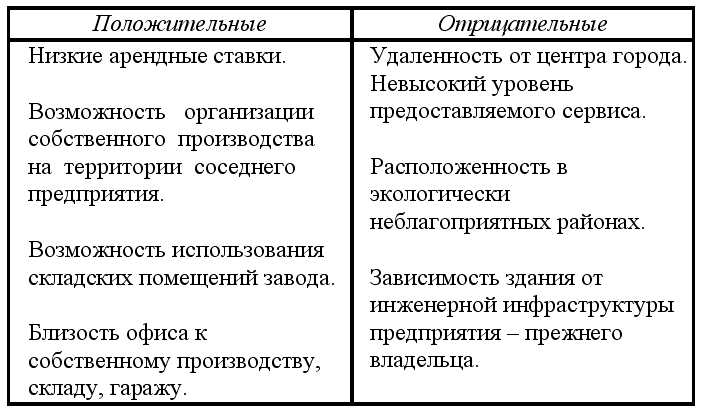 Среди факторов, которые влияют на привлекательность офисных центров, созданных вблизи промышленных предприятий либо на их территории (класс D), можно выделить: