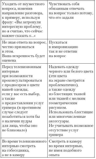 Интервью, как и медаль, имеет две стороны: с одной – вам предоставляется шанс для рекламы в широком смысле этого слова, а также возможность высказать свое мнение или ответить на критику и пр., а с другой – если вы потерпите фиаско или ваши слова будут неправильно поняты, могут возникнуть серьезные проблемы.