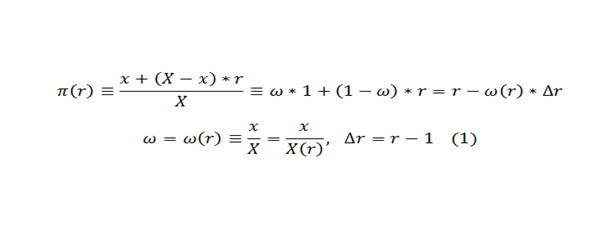 Из самого дизайна пи-оператора (полноты-простоты, как перцептивно-волюнтаристичной альтернативы избитому ожиданию), определяемому как эффективная скорость или качество в плавающе-открытом диапазоне меж 1 и r, как и строения 2.1, следует формально-апостериорное переопределение мю-цены как «мягкой» (слабой, опосредованной) зависимости «характера бытия», «темпа проживания» от им же определяемого остатка такового (и, симметрично, наоборот).