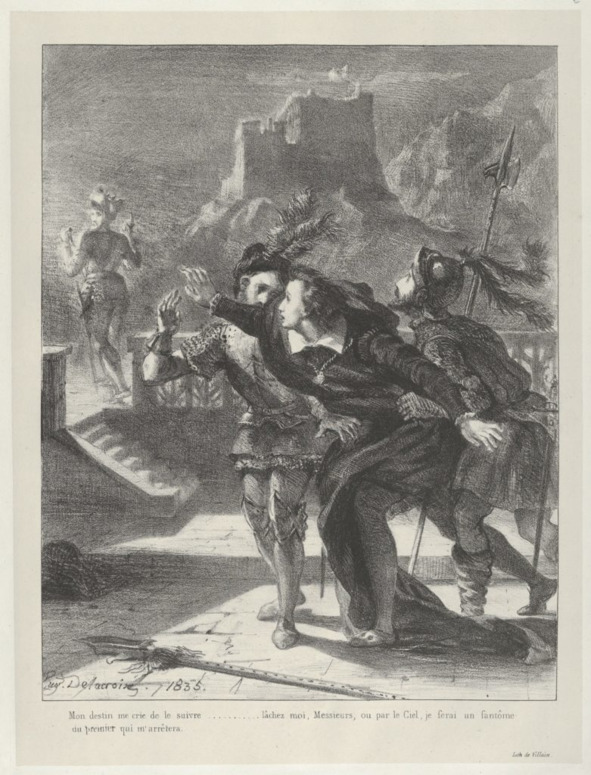 Две ночи кряду эти господа,Марцелл с Бернардо, будучи в дозоре,Когда в ночи все люди крепко спят,Встречали гостя. В этом ревизоре,Вооружённом с головы до пят,Была и стать достойнейшего склада,И поступь короля. Уж раза триСмущал он их испуганные взглядыТак близко, что мои богатыриОт страха студнем жалким оставалисьСтоять, взирая молча. Мне ониОб этом по секрету лишь признались.На третью ночь я с ними встал в тени,Когда всё в тот же час и так же точно,Доказывая, что не лгал никто,Приходит призрак. Знал его я очно.Похожи руки, но…ГАМЛЕТ