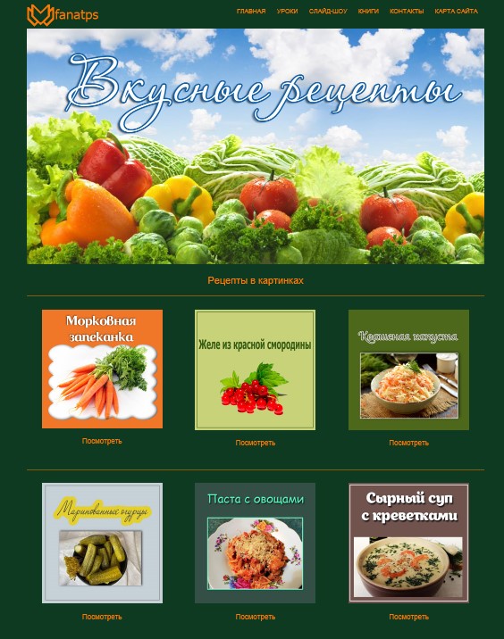 Так как я вела свой сайт на платном хостинге с уроками по фотошопу, то решила сделать на сайте раздел «Вкусные рецепты».
