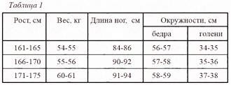 В таблице 1 вы видите антропометрические данные ног для молодых женщин нормокостного типа телосложения.
