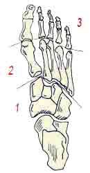 Стопа (см. рис. 6) образована костями предплюсны (1), плюсны (2) и фаланг пальцев стопы (3).