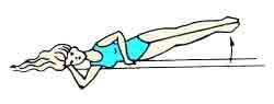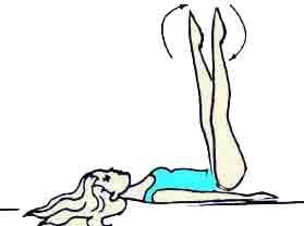12. “Ножницы”. На ноги оденьте какую-нибудь тяжелую обувь. Лягте на спину, руки вытяните вдоль тела ладонями вниз. Поднимайте, выпрямленные в коленях, ноги на высоту пятнадцать-двадцать сантиметров. На счет “раз, два… восемь” медленно скрещивайте ноги не сгибая. И вернитесь в исходное положение. Сделайте перерыв и повторите упражнение еще десять раз, постепенно увеличивая число повторений до двадцати.
