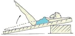 26. Исходное положение то же. Невысоко поднимите обе ноги, выпрямленные в коленях. Попросите кого-нибудь толкать их в низ, а вы старайтесь удержать их поднятыми.