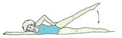 1. Лягте на правый бок, прямую или согнутую в локте правую руку положите под голову, а левую руку – на талию. Поднимайте вверх и опускайте левую ногу (см. рис. 52). Затем перевернитесь на другой бок и повторите упражнение с правой ногой.