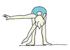 24. Выполняйте как предыдущее упражнение, но без помощи рук. Затем обхватите стопы руками и дотянитесь лбом до колен. Вернитесь в исходное положение.