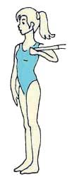 3. Встаньте прямо, ноги на ширине плеч, руки вытяните в стороны. Делайте наклоны вперед, поочередно касаясь каждой рукой носка противоположной ноги (см. рис. 57).