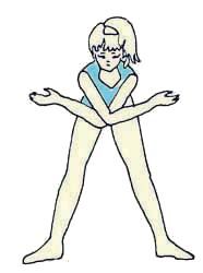 4. Встаньте прямо, ноги поставьте на ширину плеч, руки разведите в стороны. Делайте наклоны вперед, при этом скрещивая руки перед грудью и разводя их в стороны (см. рис. 68)