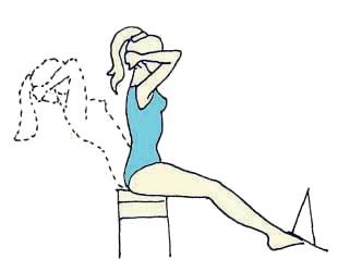 5. “Поза Анжелики”. Сядьте на стул и обеими руками обопритесь о левое колено, слегка перенеся вес тела вперед. Спину выпрямите, а живот втяните в себя. Удержите это положение как можно дольше.