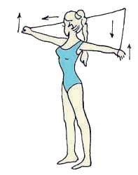 1. Встаньте прямо, ноги поставьте вместе, прямые руки поднимите перед собой на уровне плеч. Как будто преодолевая сопротивление, разводите руки в стороны и возвращайтесь в исходное положение (см. рис. 73).