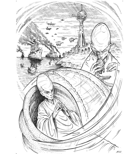 Мы жили на небольшом острове в океане и не искали контактов с миром, но мифы о богатствах эо не давали покоя окружающим правителям и авантюристам. Они яростно рвались к тому, чего не видели, но о чем страстно мечтали. На остров покатились волны воинственных варваров. Чтобы защититься от полчищ безумцев, инженеры эо создали военные машины. Беспилотные коптеры, оборудованные огнеметами, патрулировали прибрежные воды и не подпускали к острову военные корабли противника. Тепловой луч орудия на центральной башне защищал от атак с воздуха. Робопсы охраняли береговую линию.