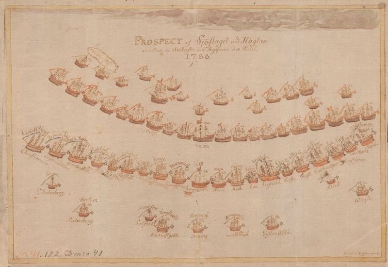 Было четыре часа пополудни, когда герцог Карл, находясь под ветром, поворотил разом всем своим флотом навстречу россиянам, ложась на курс параллельный. Шведы наконец-то решились принять бой! Однако брат короля и здесь осторожничал. Боясь ошибиться в расчетах, он шел под малыми парусами. В линии шведы имели шестнадцать линейных кораблей и семь линейных фрегатов. Авангард их вел генерал-адъютант короля, граф Вахтмейстер, под флагом вице-адмирала, арьергард – бригадир Мандарштед под контр-адмиральским флагом. Центр возглавлял сам генерал-адмирал герцог Карл Зюдерманландский, при котором в советниках состоял адмирал Врангель.