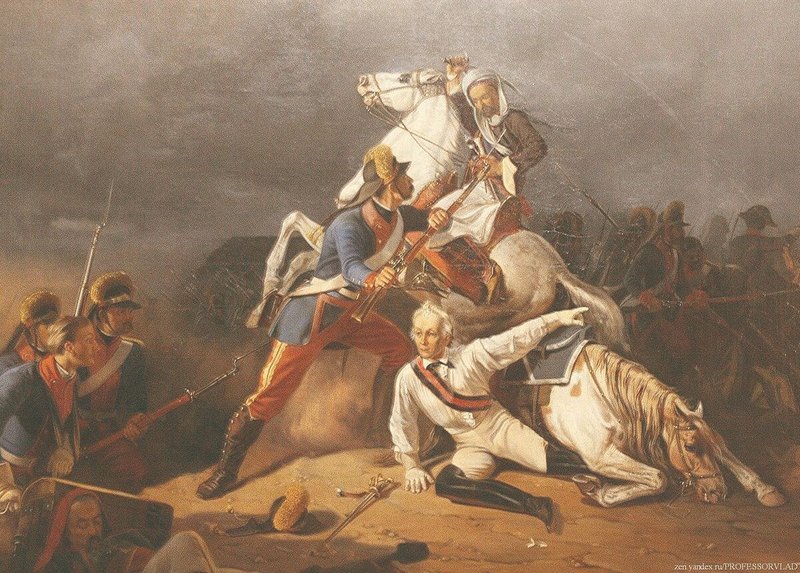 Лошади Суворова ядром оторвало морду. Генерал-аншеф едва успел с нее соскочить. Но вскоре был ранен картечью в левый бок.