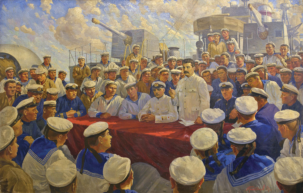И.В. Сталин выступает перед военными моряками на крейсере «Червона Украина». 1929 г. Неизвестный художник. Из архива журнала «Морской сборник»