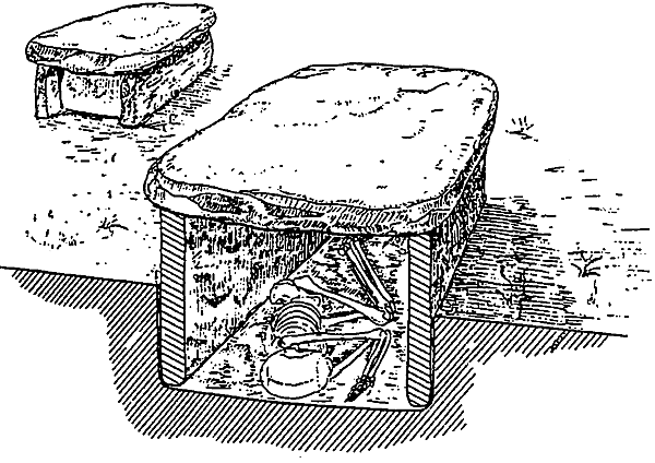 Ну а что материального оставили после себя загадочные тавры? Увы, тоже немного. Археологам хорошо известны так называемые «каменные ящики» в горном Крыму. Это четыре стоящие вертикально каменные плиты, перекрытые сверху пятой. В таких «ящиках» тавры погребали умерших, причем не по одному, а во множестве. Когда же костей становилось слишком много, они их попросту выбрасывали, оставляя лишь черепа. В одном из таких «ящиков» было найдено почти семь десятков черепов. Примечательно, что в этих таврских могильниках никогда никто не находил никаких привезенных изделий, кроме разве что женских бус! Этот факт столь примечателен, что мы к нему скоро еще вернемся.
