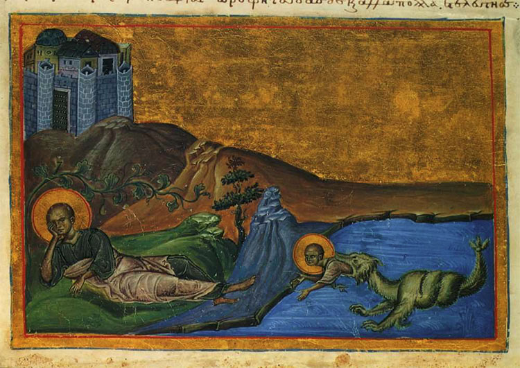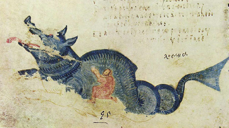 Иона пророк в чреве кита. Византийская миниатюра 9 века.