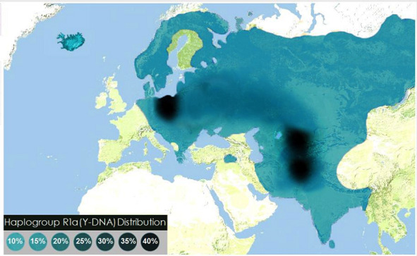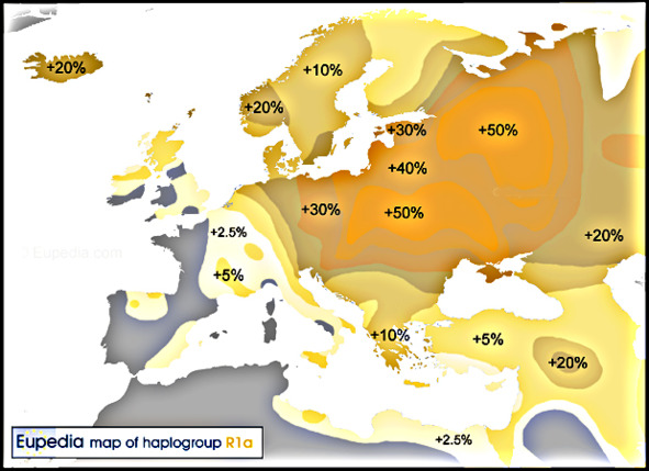 Перед нами «Русская» генетика (R1a) в Европе, Средиземноморье, Евразии.
