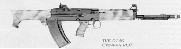 После многократных испытаний на заводе, в войсковых частях, на полигонный этап конкурса, проведенный в 1987 году были направлены автоматы – АС и АСМ (АН-94) Никонова Г. Н. и автомат ТКБ-0146 Стечкина И. Я.
