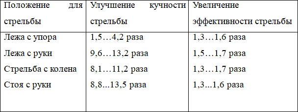 Некоторое повышение эффективности особенно для положения «лежа с упора» и «лежа с руки» можно ожидать при уменьшении ошибок наводки, которое связано с совершенствованием конструкции прицельных устройств.