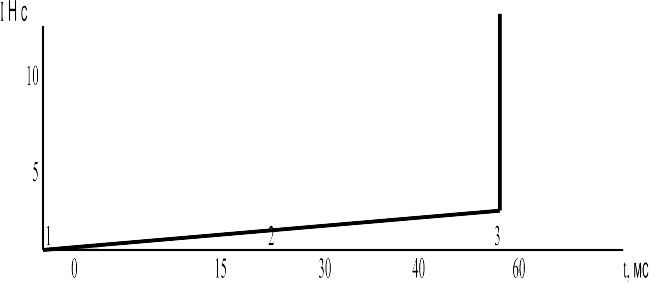 Рис. 1. График зависимости уровня роста кучности стрельбы от темпа для классической ударной схемы
