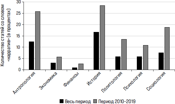 Когда экономисты стремятся понять суть наиболее значимых для истории экономических событий, они редко сосредоточивают внимание на нарративах, сопровождавших ход этих событий. На рис. 2.1 можно видеть, сколь велико отставание экономики от прочих научных дисциплин в оценке важности нарративов.