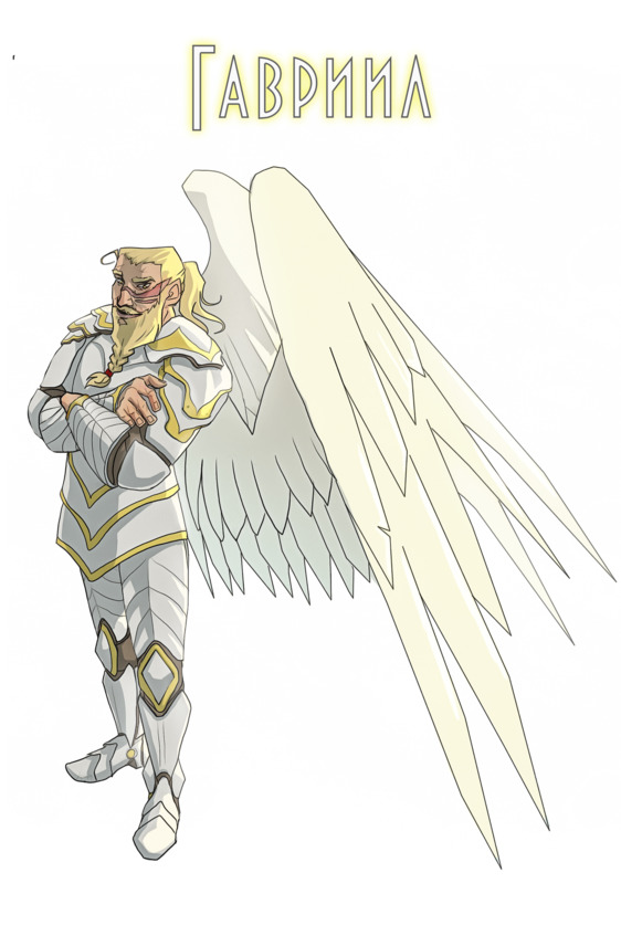 На брусчатку приземлился, чтоб меня комары сожрали, самый настоящий ангел. Мужик, лет сорока, в бело-желтых железных доспехах и с парой огромных белых крыльев за плечами. Над головой была зеленая полоска и синяя надпись «Гавриил».