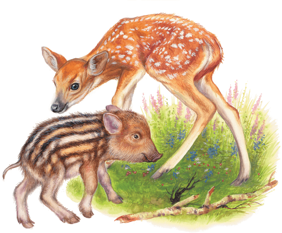Встретились на поляне двое малышей: Косулёнок – лесной козлёночек и Кабанчик – лесной поросёнок.