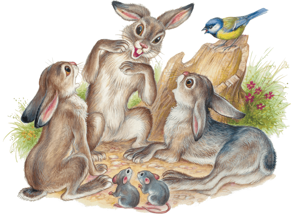 – У нас именно так и бывает, – сказала Зайчиха. – Мы со своими детками не привыкли нянчиться. Рождаются зайчата, мы их разок покормим, а потом где-нибудь под кустом оставим – и до свиданьица!