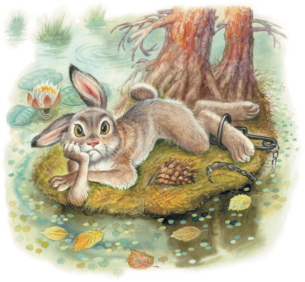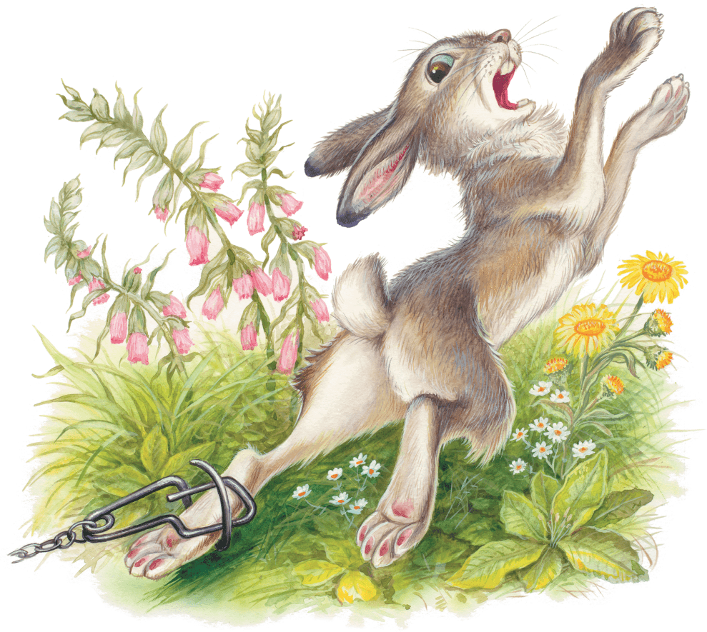 У Зайца-то в чём спасенье? В ногах, сами знаете! Бывало, и от Лисы удерёшь, и от Совы отобьёшься, на спине лёжа, и от охотников уйдёшь, следочки запутывая… А теперь что делать? Любой враг меня словит!