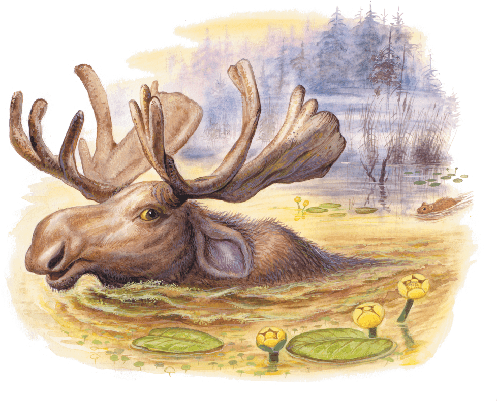 Лось мимо плыл и вдруг повернул к моему островку. Вот беда-то! Ведь он одним копытом наступит – и перевернёт весь остров! Но Лось, наверно, разобрал, что это не твёрдая земля, вздохнул шумно и направился к берегу.